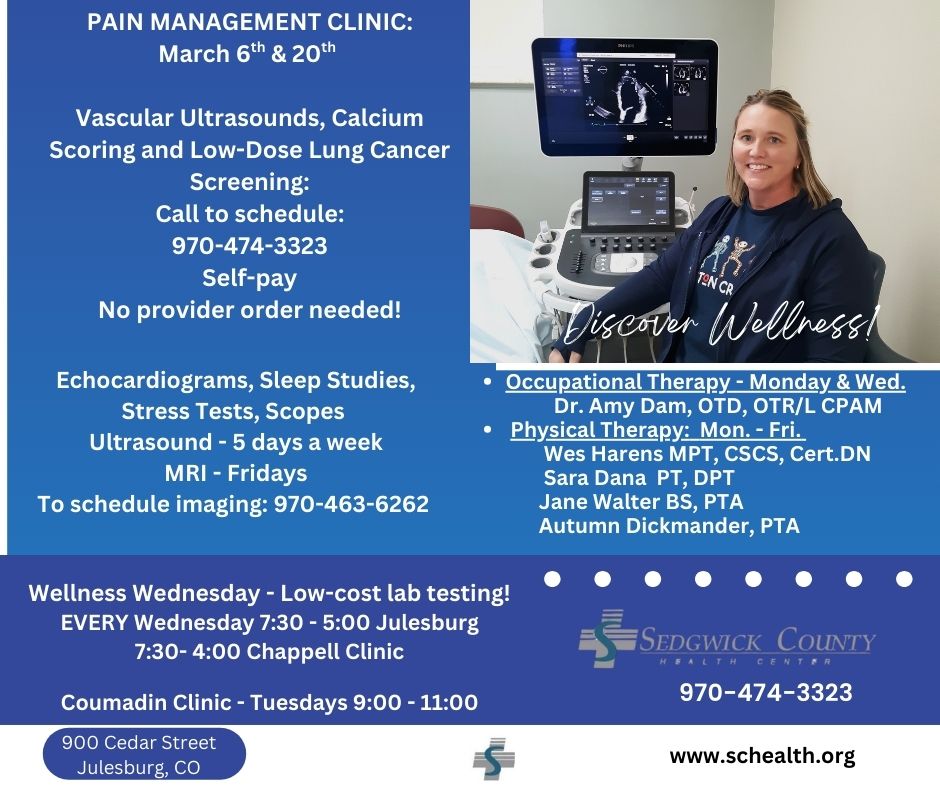 Our two satellite clinics are located in Big Springs and Chappell, NE. Low Cost Wellness Wednesday lab draws are available at all three clinics!